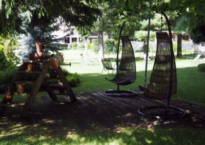 All’esterno dell’Hotel, per coloro che amano la natura ed il relax nel verde, l’Hotel mette a disposizione un parco privato con alberi centenari, fiori e piante di ogni genere. Gazebo, sedie a sdraio e giochi per i bambini sono gratuitamente disponibili da parte dei clienti.